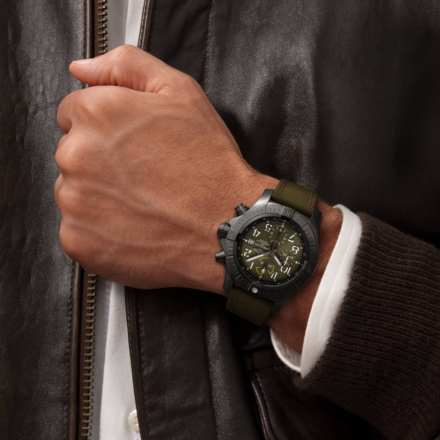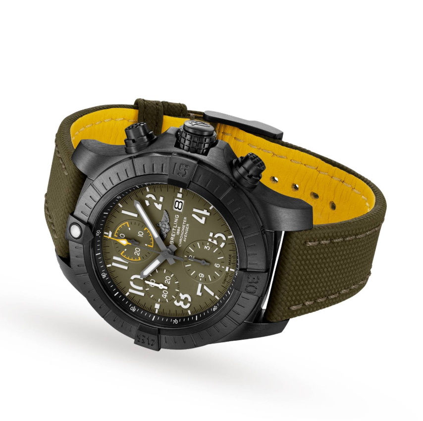 Ensuring unrivalled safety and reliability for any airborne adventurer, the Avenger Chronograph 45 models can be easily operated while wearing gloves due to their rugged nature and unique grip pattern finish.