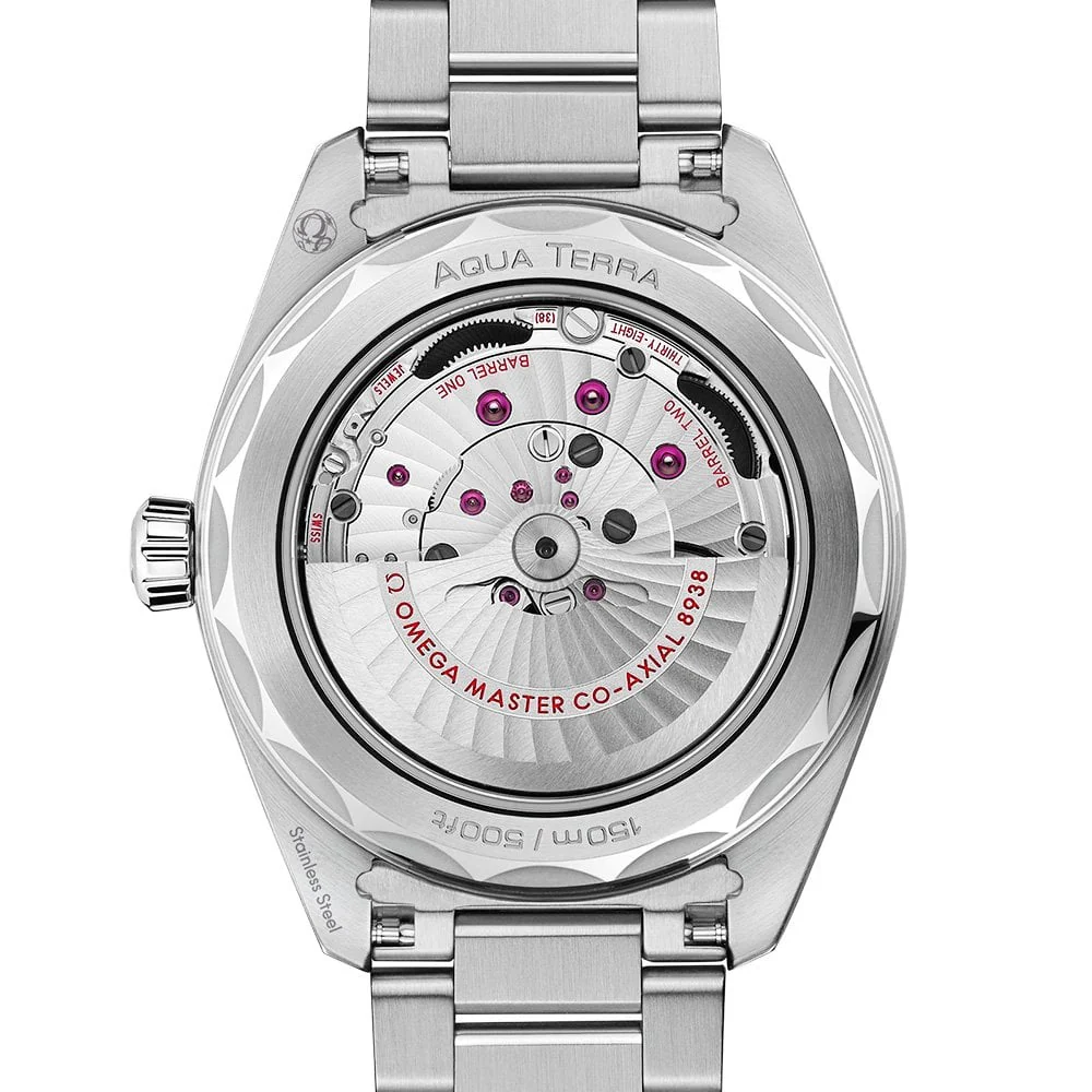 OMEGA Seamaster Aqua Terra GMT Worldtimer 43mm Green Dial Men's Watch 220.30.43.22.10.001. Stainless steel 43mm case and green ceramic bezel all on a matching stainless steel bracelet. This men's watch has a sun-brushed green dial with golden & luminous applied hands and hour markers as well as a date display at the 6 o'clock position & GMT function set around the dial. Water resistant up to 150m and sapphire crystal glass. 60 hour power reserve. OMEGA Calibre 8938 METAS approved automatic movement.
