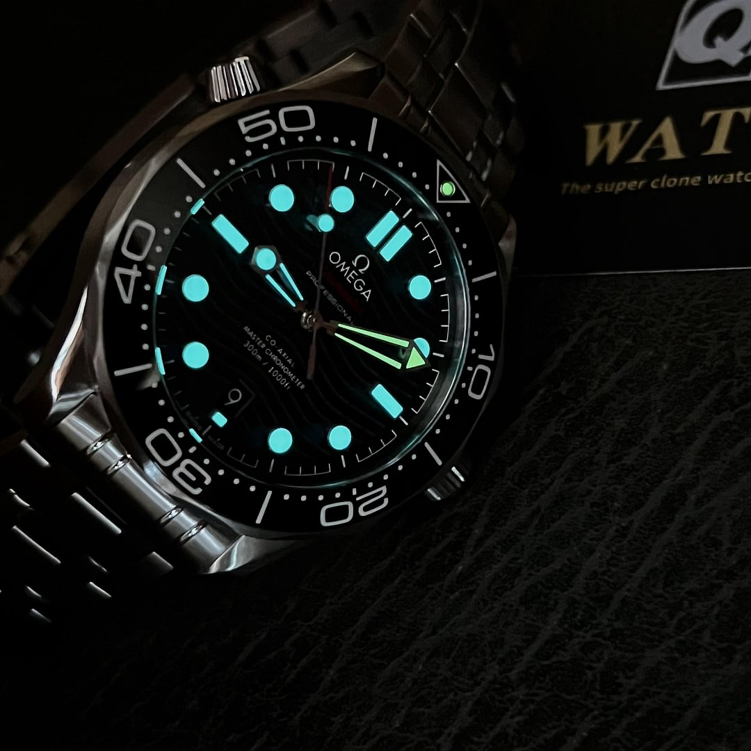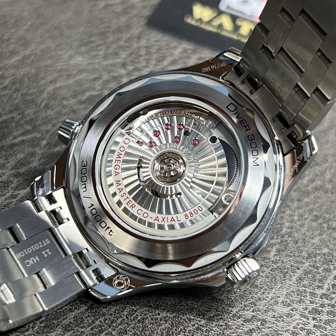 Having enjoyed a legendary following on the wrists of professional divers and devoted Omega watch fans, this robust diving tool – the Omega Seamaster Professional Diver 300M - is ready for demanding underwater exploration and comes in a 42mm stainless steel case. As its name suggests, the men’s Seamaster watch is equipped with 300-meter water resistance and is topped with a strong domed anti reflective sapphire crystal glass front, which protects a polished black ceramic dial from dust, dents, scratching, water, heat and light damage. The surface of the dial is also executed with a brushed and polished laser-ablated wave-effect pattern, creating a sense of depth against a set of luminous coated central hands. The hour track, represented in circular and rectangular-shaped indexes has also received a generous helping of luminous material, guiding the wearer to precision timekeeping during the night. Powering the hands of this Seamaster Diver 300M watch is the Omega Master Chronometer Calibre 8800, which provides a 55-hour power reserve. The self-winding engine is also resistant to magnetic fields up to 15,000 gauss. The movement is put on display behind a sapphire-backed case and also provides a date aperture at 6 o’clock. Securing comfortably to the wrist of the diver, this men’s 42mm steel Omega Seamaster Diver 300M watch is completed on a stainless steel bracelet with polished and brushed links and a folding clasp engraved with the iconic Omega logo.