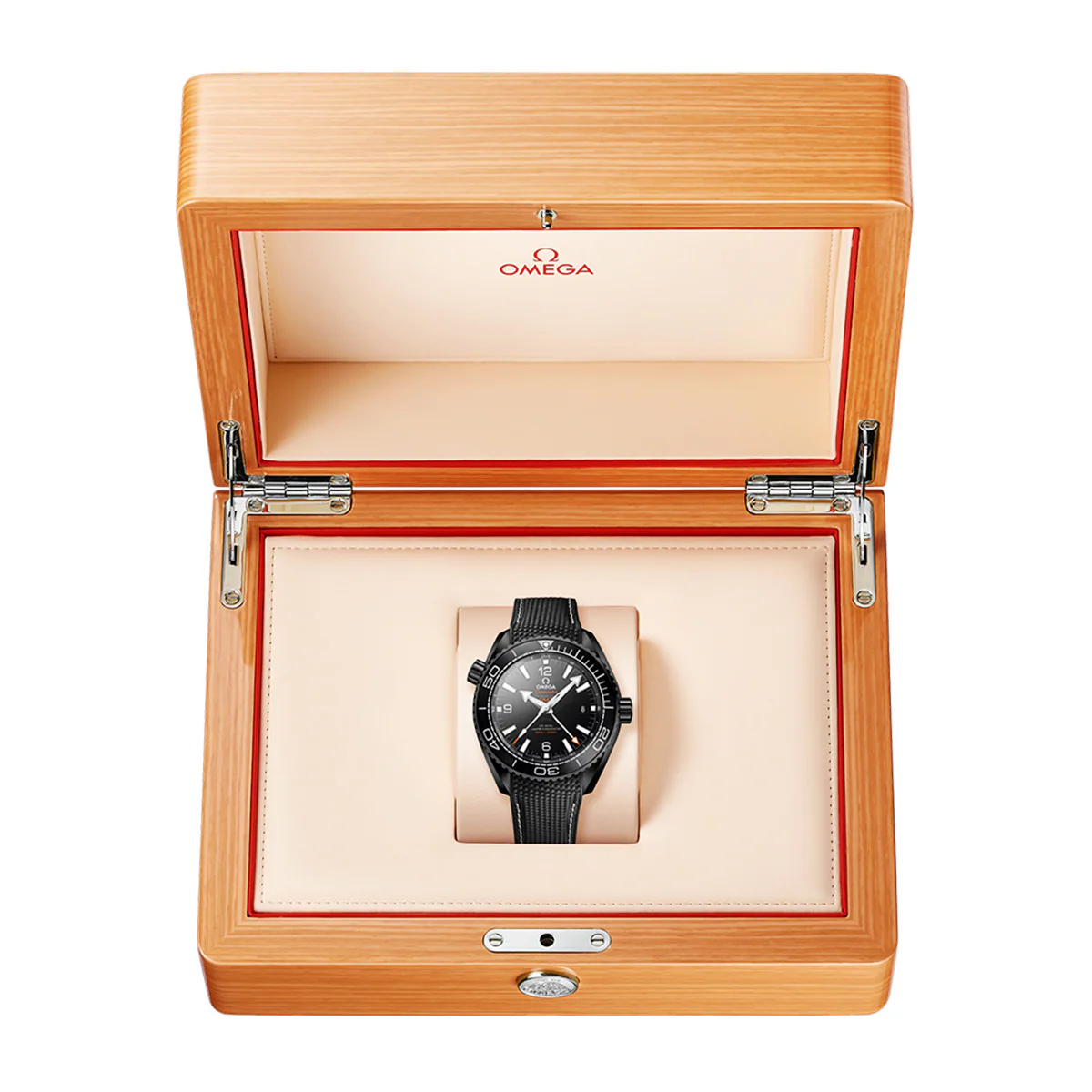 OMEGA Seamaster Planet Ocean 600m Deep Black 45.5mm Men's Watch 21592462201001.Black ceramic 45.5mm case and bezel all on a black rubber strap. This men's watch has a black dial with polished hands and hour markers, date display at the 3 o'clock position. Sapphire crystal glass and water resistant up to 600m. 60 hours power reserve. Automatic movement.