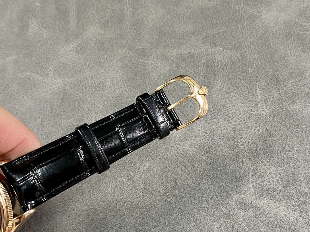 • Rolex Cellini Dual Time 50525 Brown Guilloche Dial Black Leather Strap 39mm Mens Replica Watch
