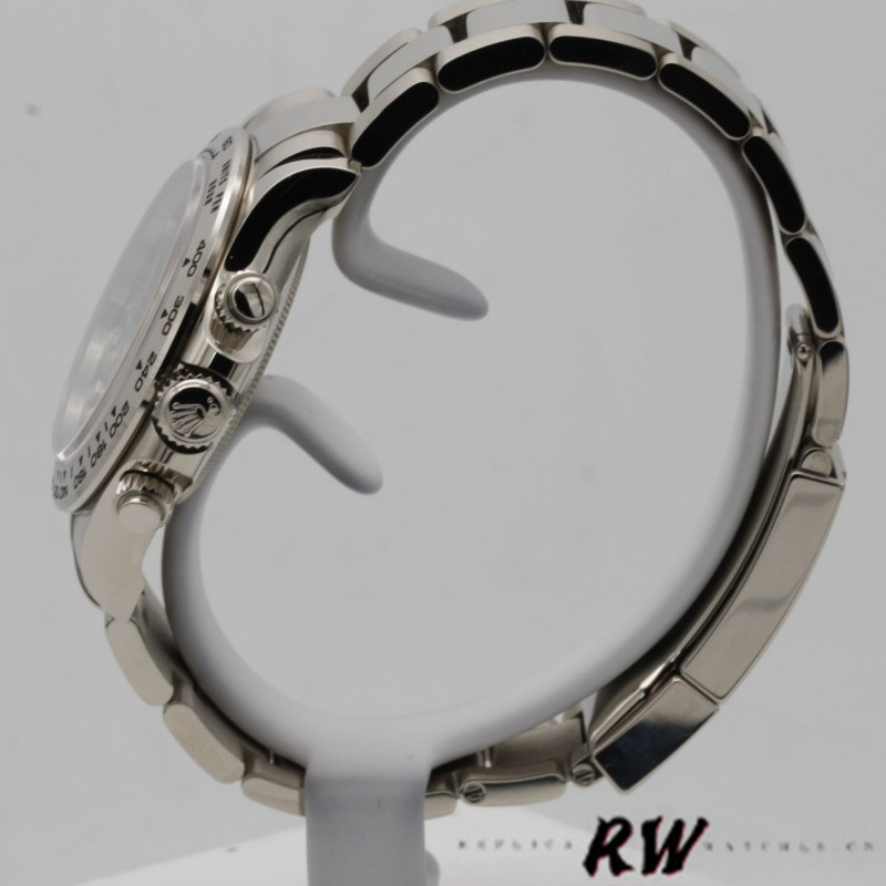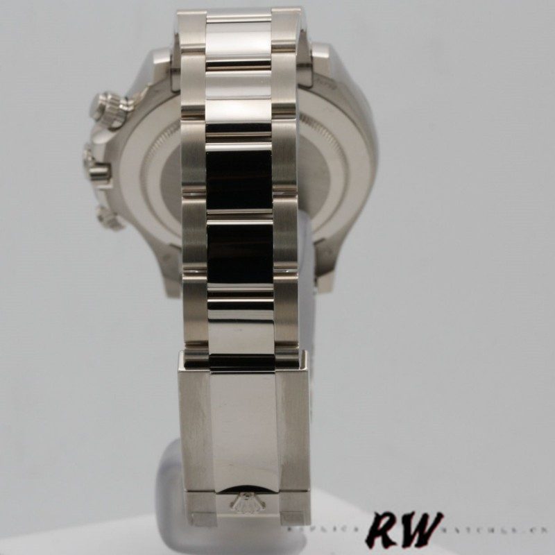 Rolex Cosmograph Daytona 116509 Black Dial White Gold 40MM Mens Replica Watch has a White Gold 40 mm Round Case with Screw Down Crown and a White Gold.Black dial with 8 applied diamond hour markers, 3 white gold rimmed mother of pearl subdials, 12-hour chronograph, sapphire crystal,The elegantly designed White Gold with Folding Oysterlock Safety will look great on your wrist.