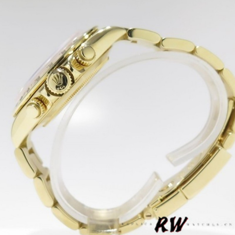 Rolex Cosmograph Daytona 116528 Grey Index Dial 40MM Mens Replica Watch,40mm yellow gold case in diameter. Yellow gold tachymeter engraved bezel. Scratch resistant sapphire crystal. Grey Dial with Index Hour Markers.Outer 1/5th seconds track. Three Gold outlined subsidiary dials for the seconds, the 12-hour and 30-minute registers. Luminous yellow gold baton hands.Yellow gold oyster bracelet with flip-lock clasp.