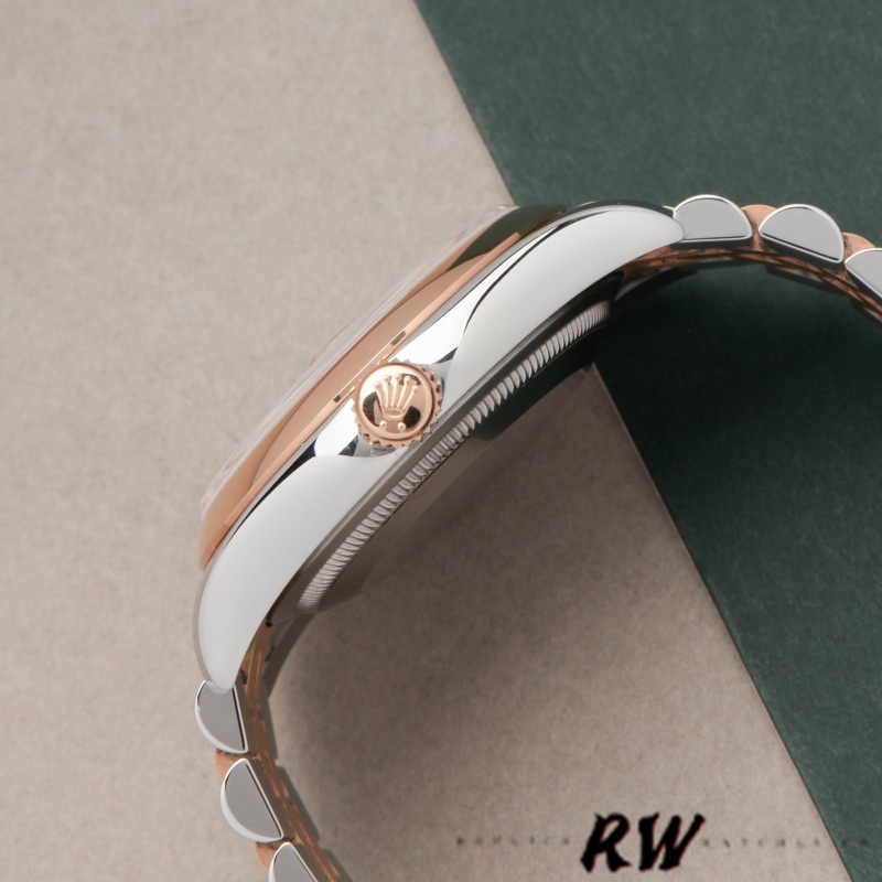 Rolex Datejust 116201 Black Mother of Pearl Dial 36mm Unisex Replica Watch.Stainless steel case with a stainless steel Rolex jubilee bracelet with everose gold center links. Fixed fluted everose gold bezel. Black mother of pearl dial with rose gold-tone hands and diamond hour markers. The beautifully streamlined oyster bracelet and jubilee bracelet that make wearing this watch a truly unique pleasure.