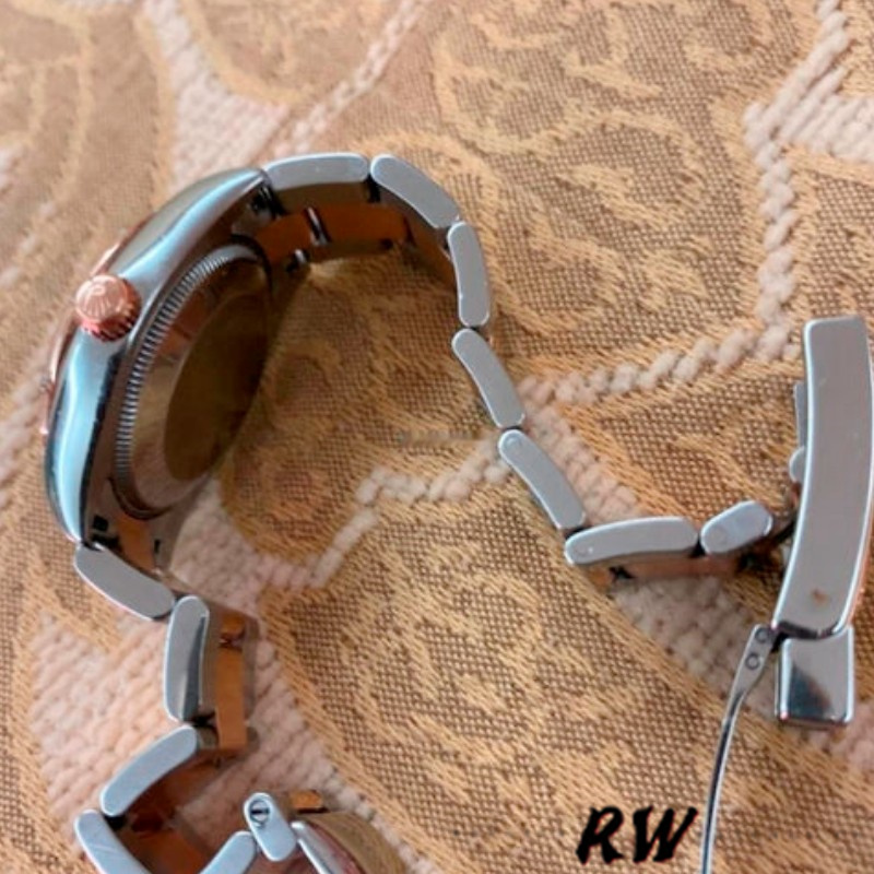 Rolex Datejust 178341 Black Roman Numerals Dial 31MM Lady Replica Watch,31mm Everose Rolesor case comprised of Oystersteel and Everose gold, screw-down back, screw-down crown with twinlock double waterproofness system, Everose gold domed bezel set with 24 diamonds, scratch-resistant sapphire crystal with cyclops lens over the date, Black Dial with Roman Numerals, Date calendar at 3 o'clock aperture.Comes on 2-tone with a stainless steel and rose gold bracelet finished with a folding clasp.
