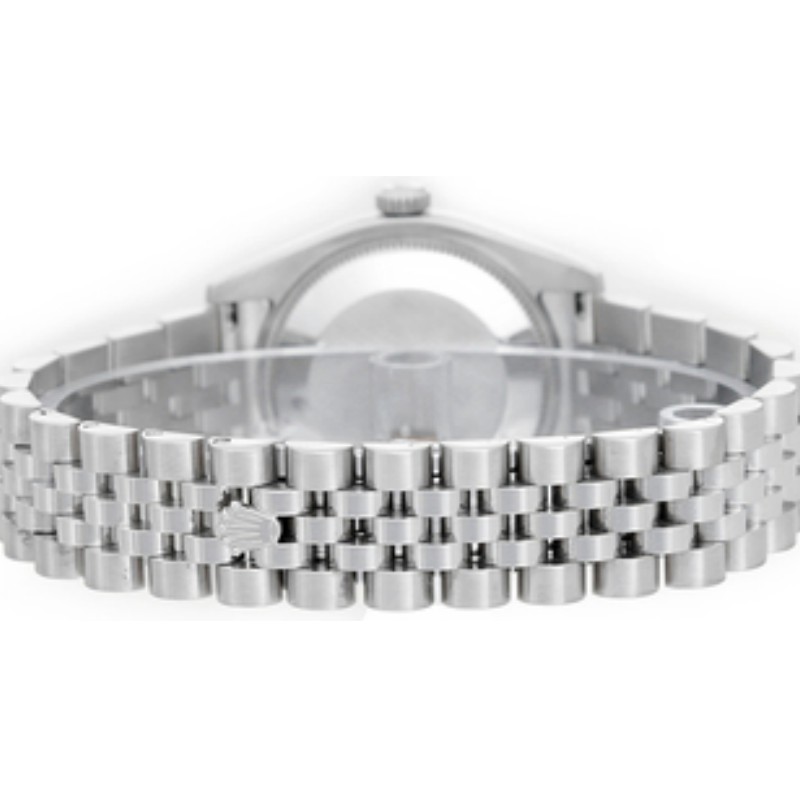 Rolex Datejust 178384 Stainless Steel Silver Roman Dial 31MM Lady Replica Watch,has a White Gold 31 mm Round Case with Screw Down Crown,White Gold bezel with set diamonds.Silver Dial with Roman Dial Markers.Date calendar at 3 o'clock aperture. Stainless steel jubilee bracelet with fold over clasp.