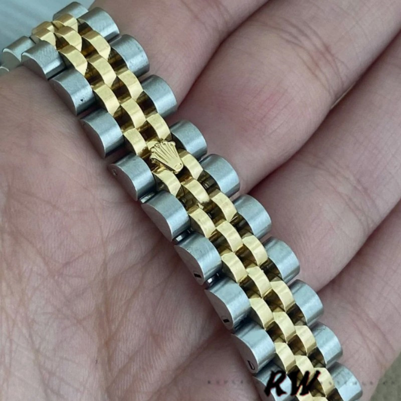 Rolex Datejust 179163 Champagne Jubilee Diamond Dial Domed Dezel 26MM Lady Replica Watch,26MM Stainless steel yellow gold case, Domed bezel.Champagne Jubilee Diamond Dial with Diamond Hour Markers,Date display at the 3 o'clock position.Scratch resistant sapphire crystal. Screw down crown.The reliable Yellow Gold and Stainless Steel Oyster Bracelet will look great on your wrist.