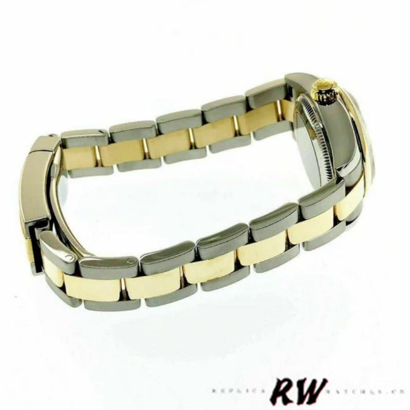 Rolex Datejust 179163 White Diamond Dial Domed Dezel 26MM Lady Replica Watch,26MM Stainless steel yellow gold case, Domed bezel.White Dial Diamond Hour Markers.Date display at the 3 o'clock position.Scratch resistant sapphire crystal. Screw down crown.The reliable Yellow Gold and Stainless Steel Oyster Bracelet will look great on your wrist.