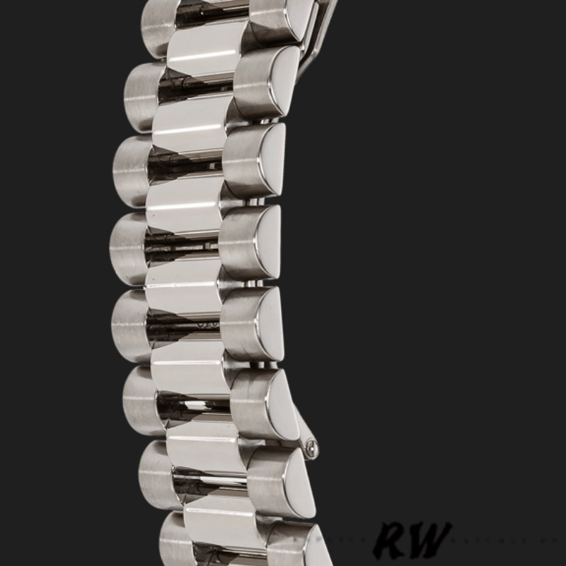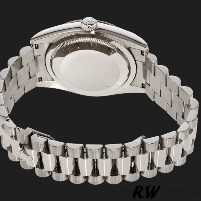 Rolex Day-Date 118209 Copper Brown Dial 36mm Unisex Replica Watch. 36mm white gold Case .Chocolate Brown Dial with Roman Numerals With Manufacturer Serial Numbers , Minute markers around the outer rim. Date display at the 3 o'clock position.polished bezel,White Gold Domed Bezel and Oyster Bracelet,Scratch Resistant Sapphire Crystal.Rolex Day-Date 118209 White Gold Silver Dial Automatic 36mm Unisex Replica Watch.36mm white gold oyster case in diameter. White gold smooth bezel. Scratch resistant sapphire crystal with cyclops magnifier. Silver dial with raised roman numeral hour markers. Date calendar at 3 o'clock aperture. Day window at 12 o'clock aperture. White gold oyster bracelet with hidden clasp. Fits 7 3/4" wrist.