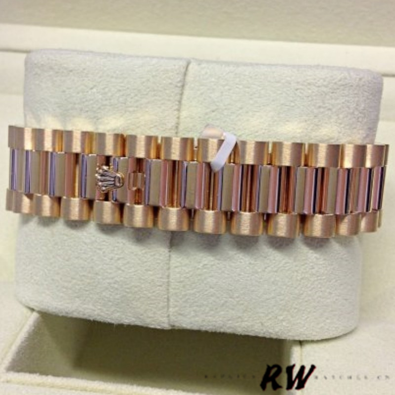 Rolex Day-Date 118238 Yellow Gold White dial Fluted Bezel 36mm Unisex Replica Watch has a Yellow Gold 36 mm Round Case with Screw Down Crown and a Yellow Gold Fluted Bezel. Featuring a white Roman numeral dial housing an external Cyclops date aperture at 3 O'clock and a day aperture in-between 11 and 1 O'clock , polished finish shoulders and case sides.Solid case back. The reliable Yellow Gold Oyster Bracelet will look great on your wrist.