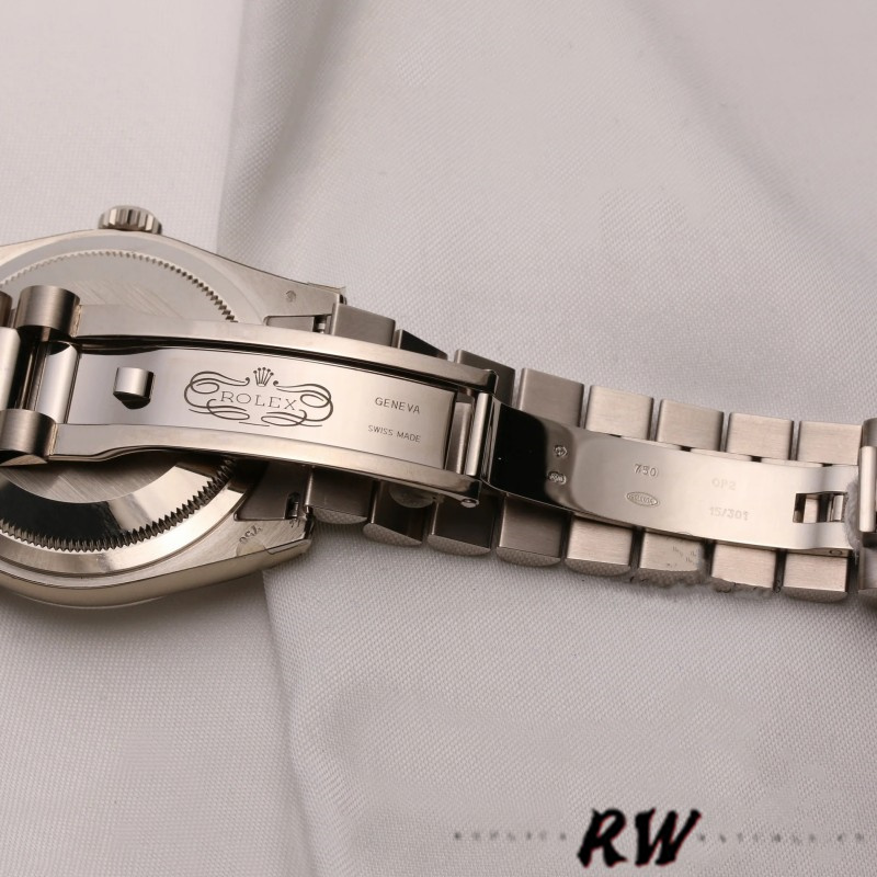 Rolex Day-Date 118239 Jubilee Chocolate Brown Dial 36mm Unisex Replica Watch.36mm white gold case with white gold fluted bezel.Brown jubilee dial, 10 diamond hour markers, day display at 12 0'clock, date display at 3 o'clock with a cyclops magnifying lens. White gold Oyster bracelet, hidden deployant clasp. Sapphire crystal. White gold case back.