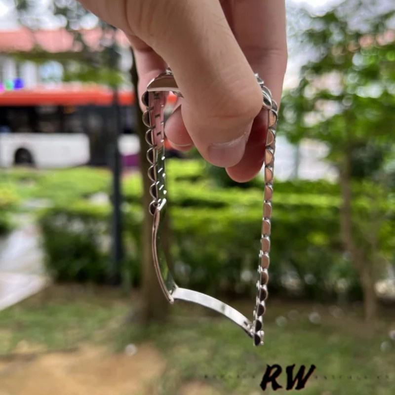 Rolex Day-Date 118239 MOP Dial 36mm Unisex Replica Watch. 36mm white gold case with a white gold Rolex Oyster bracelet. Fixed - fluted White gold bezel. White mother of pearl dial with baguette diamonds at 6 and 9 O'Clock and diamond dot hour markers on the other hours.Day of the week window displayed at the 12 o'clock position.Date window displayed at the 3 o'clock position with a cyclops magnifying lens.Scratch resistant sapphire crystal. Screw down crown.