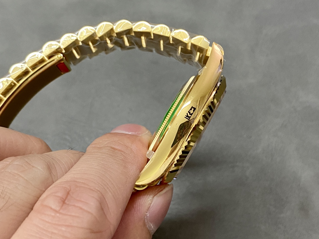 Rolex Day-Date 128238 Fluted Bezel Champagne Index Dial 36MM Unisex Replica Watch,36mm yellow gold case, screw-down back, screw-down crown with twinlock double waterproofness system, fluted bezel,Champagne Index Dial with Index Hour Markers.Date window displayed under cyclops lens at 3 o'clock. Day window displayed at 12 o'clock.Instantaneous day and date setting.Yellow gold President bracelet with semi-circular three-piece links, concealed folding Crownclasp buckle.