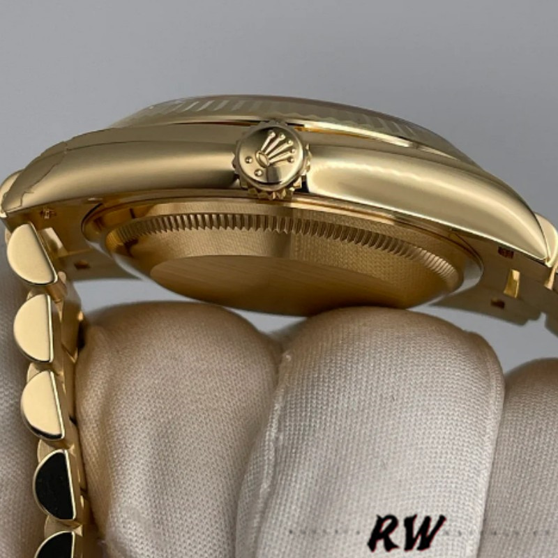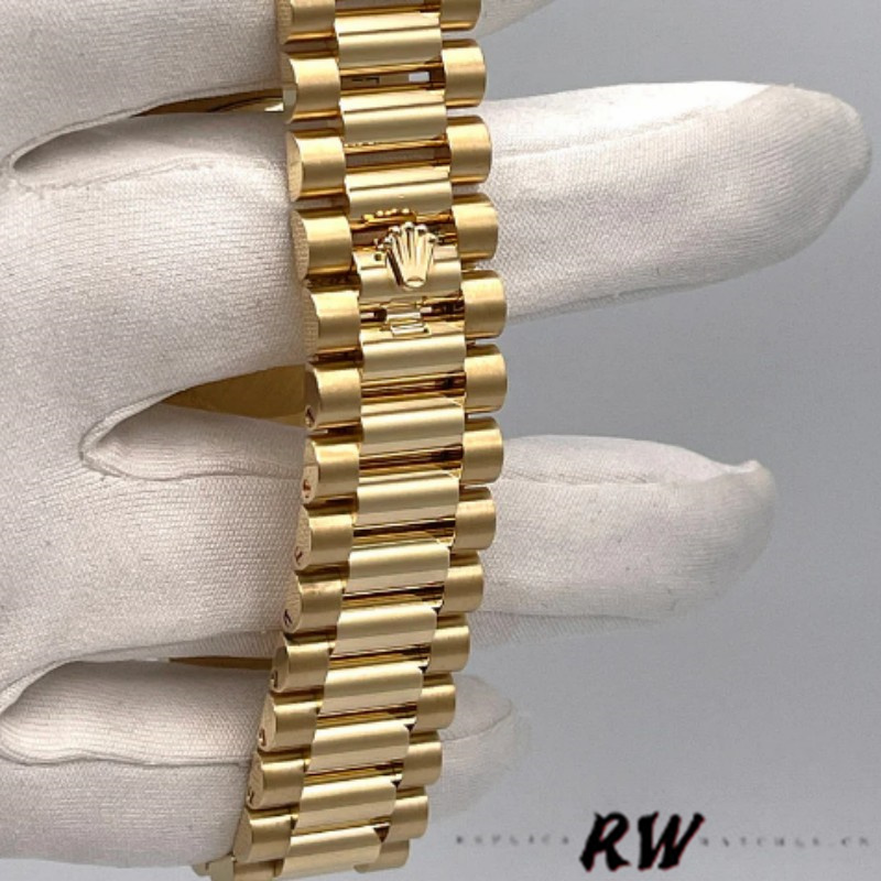 Rolex Day-Date 128238 Fluted Bezel Green Diamond Dial 36MM ReUnisex plica Watch ,36mm yellow gold case, screw-down back, screw-down crown with twinlock double waterproofness system, fluted bezel,Green ombre dial with diamond hour markers.Date window displayed under cyclops lens at 3 o'clock. Day window displayed at 12 o'clock.Instantaneous day and date setting.Yellow gold President bracelet with semi-circular three-piece links, concealed folding Crownclasp buckle.