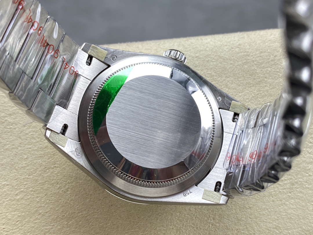 Rolex Day-Date 128239 White Gold Pink Opal Dial 36MM Unisex Replica Watch,36mm white gold case, screw-down back, screw-down crown with twinlock double waterproofness system, fluted bezel, Date Window Displayed at 3 O'Clock,Day Window Displayed at 12 O'Clock,scratch-resistant sapphire crystal with cyclops lens over the date,Pink opal dial with index and Roman numeral diamond hour markers,White gold President bracelet with semi-circular three-piece links, concealed folding Crownclasp buckle.