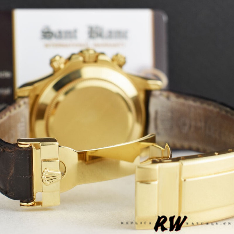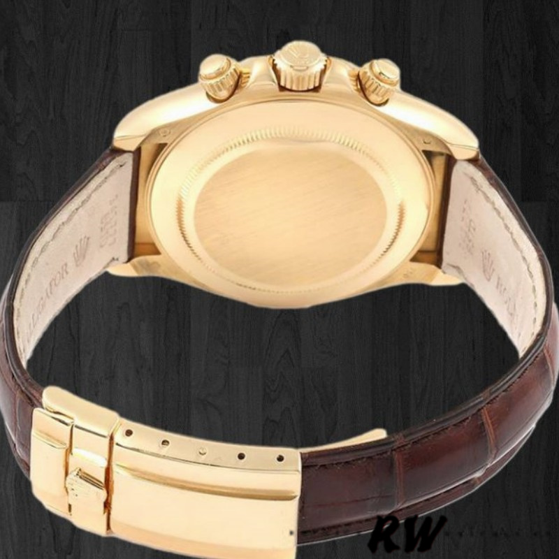 Rolex Daytona 116518 MOP Diamond Dial Brown Leather strap 40mm Mens Replica Watch. 40mm Yellow gold Case. Fixed Tachymeter Engraved Bezel. Scratch resistant sapphire crystal. Mother of pearl dial with diamond hour markers. Small seconds hand at 6 o'clock. Centre chronograph hand, 30-minute counter at 3 o'clock and 12-hour counter at 9 o'clock. Brown leather strap with yellow gold deployent buckle.which looks pretty stunning and high-end.