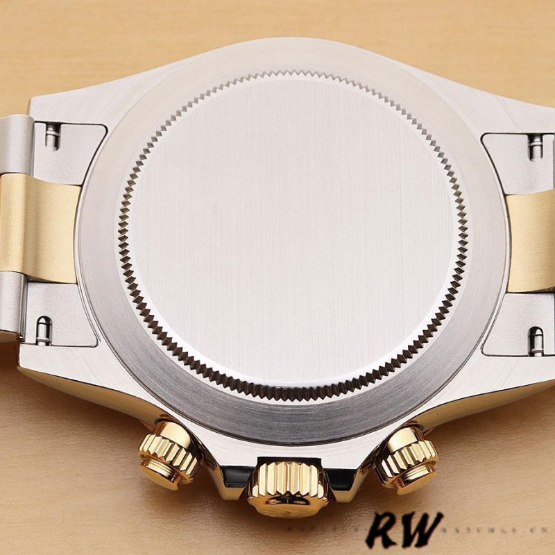 Rolex Daytona 116523 Stainless Steel Black Dial 40mm Mens Replica Watch.40mm Stainless Steel Case. The black dial with applied luminescent hour markers. The sub dials are matching black with gold borders and polished god hands.Yellow Gold and Stainless Steel Oyster Bracelet.Sapphire Crystal.The bracelet has eleven full size links and the fold over extension, comfortably fitting up to a 7.3-inch wrist.