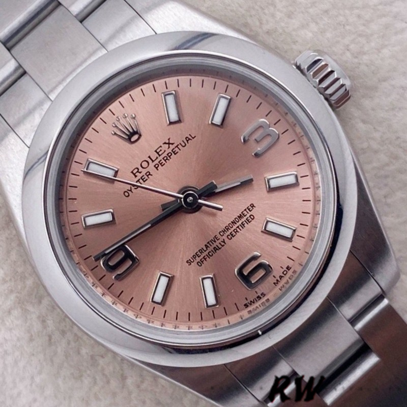 Rolex Oyster Perpetual 176200 Pink Dial Domed Bezel 26MM Lady Replica Watch ,26MM Stainless steel oyster case in diameter. Stainless steel smooth domed bezel. Scratch resistant sapphire crystal. Pink Dial with Arabic numerals and index markers.Stainless steel oyster bracelet with a fold over clasp.