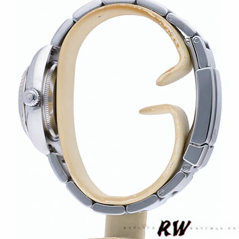 Rolex Oyster Perpetual 176234 Fluted Bezel Black Arabic Dial 26MM Lady Replica Watch,26MM Stainless steel oyster case in diameter.White gold fluted bezel. Scratch resistant sapphire crystal. Black dial with Arabic numerals and white luminous baton hour markers. Stainless steel oyster bracelet with a deployant buckle.
