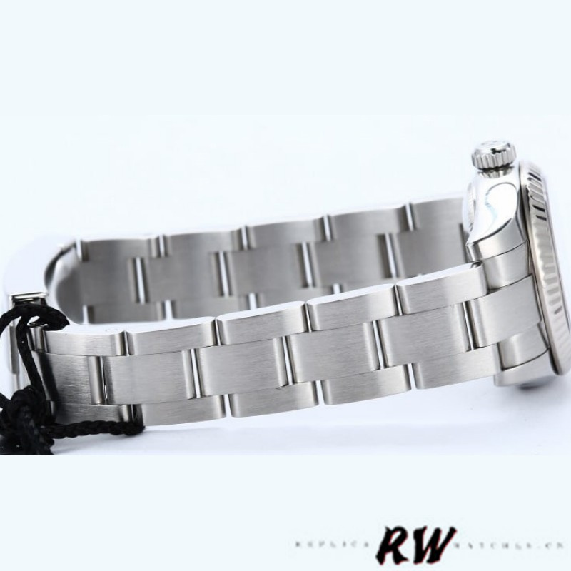 Rolex Oyster Perpetual 176234 Pink Maxi Arabic Numerals Dial 26MM Lady Replica Watch,26MM Stainless steel oyster case in diameter.White gold fluted bezel. Scratch resistant sapphire crystal. Pink dial with Maxi Arabic Numerals,Stainless steel oyster bracelet with a deployant buckle.