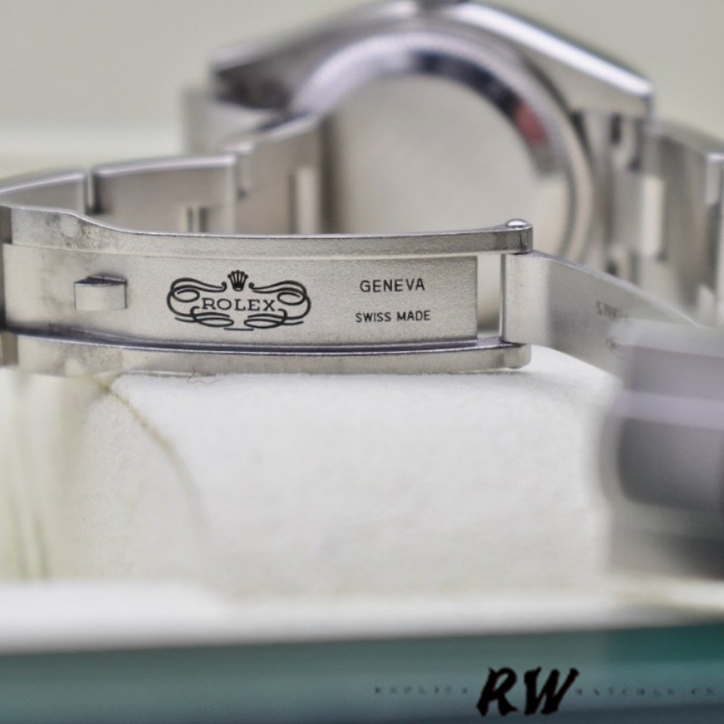 Rolex Oyster Perpetual 176234 Silver Dial Blue Baton 26MM Lady Replica Watch ,26mm Stainless steel oyster case in diameter.White gold fluted bezel. Scratch resistant sapphire crystal. Silver dial with Arabic numerals and Blue luminous baton hour markers. Stainless steel oyster bracelet with a deployant buckle.