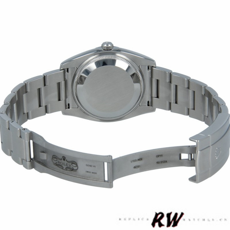 Rolex Oyster Perpetual Air King 114210 Blue Dial 34mm Unisex replica watch,34mm watch features a stainless steel case,Smooth Fixed domed stainless steel bezel.Blue dial has Arabic numeral and index hour markers.Arabic numerals mark the 3,6 and 9 o'clock positions.Minute markers around the outer rim.Scratch resistant sapphire crystal.Screw down crown.Stainles steel oyster bracelet with oysterlock clasp.