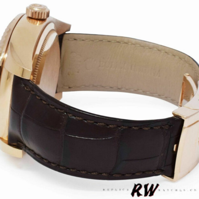 Rolex Sky-Dweller 326135 Sundust Dial Rose Gold 42MM Mens Replica Watch,42mm Everose gold case, bidirectional rotatable ring command fluted bezel , Sundust Dial with Roman Numeral Hour Markers.Second time-zone displayed via off-center rotating disc, Saros annual calendar with date at 3 o'clock and month indicated in discrete apertures at each of the 12 hour marks, Alligator leather strap with Everose gold folding Oysterclasp.