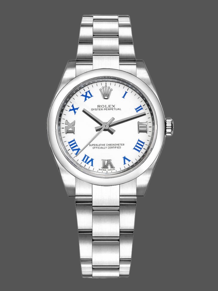 Rolex Oyster Perpetual 177200 White Dial Blue Roman Oyster Bracelet 31mm Lady Replica Watch