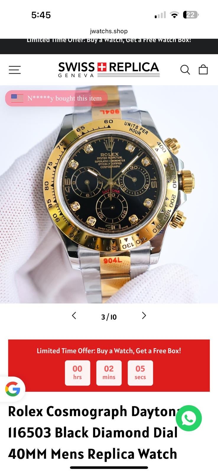Rolex Cosmograph Daytona 116503 Black Diamond Dial 40MM Mens Replica Watch