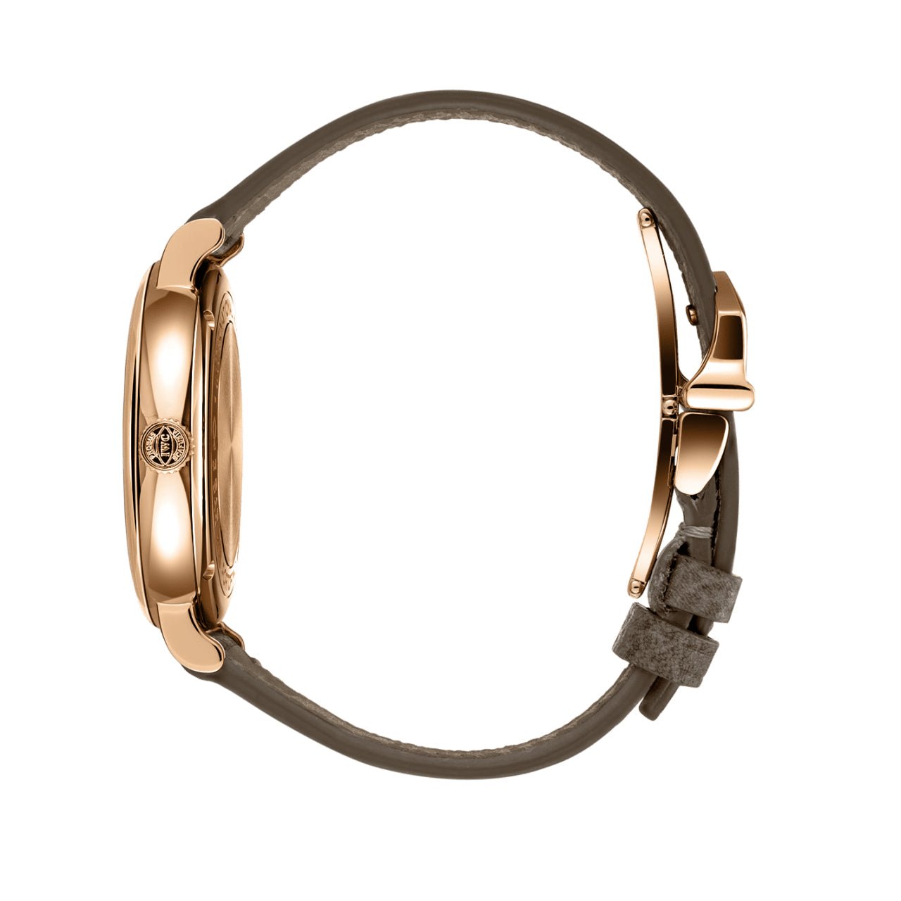 Highlights: The Portofino Automatic 34 (IW357414) features an 18-karat gold case with gold-plated hour markers, Roman numerals at 6 & 12 o’clock, and slender feuille hands providing a delightful contrast to the silver-pated dial, on which twelve bright white diamonds mark the hours. This casually elegant ladies’ watch is fitted with a taupe calfskin strap with a butterfly clasp. Thanks to the integrated quick-change system, the strap can be changed in no time, allowing the timepiece to be adapted to different outfits or situations.