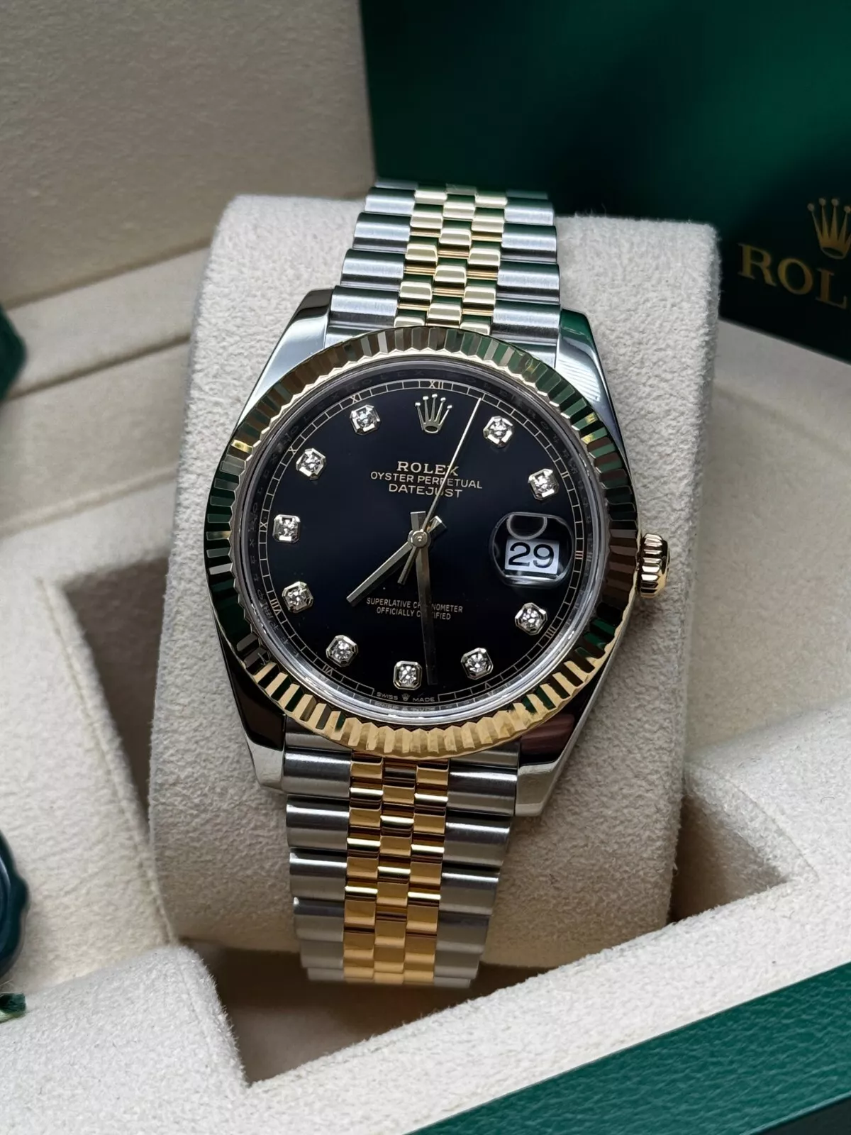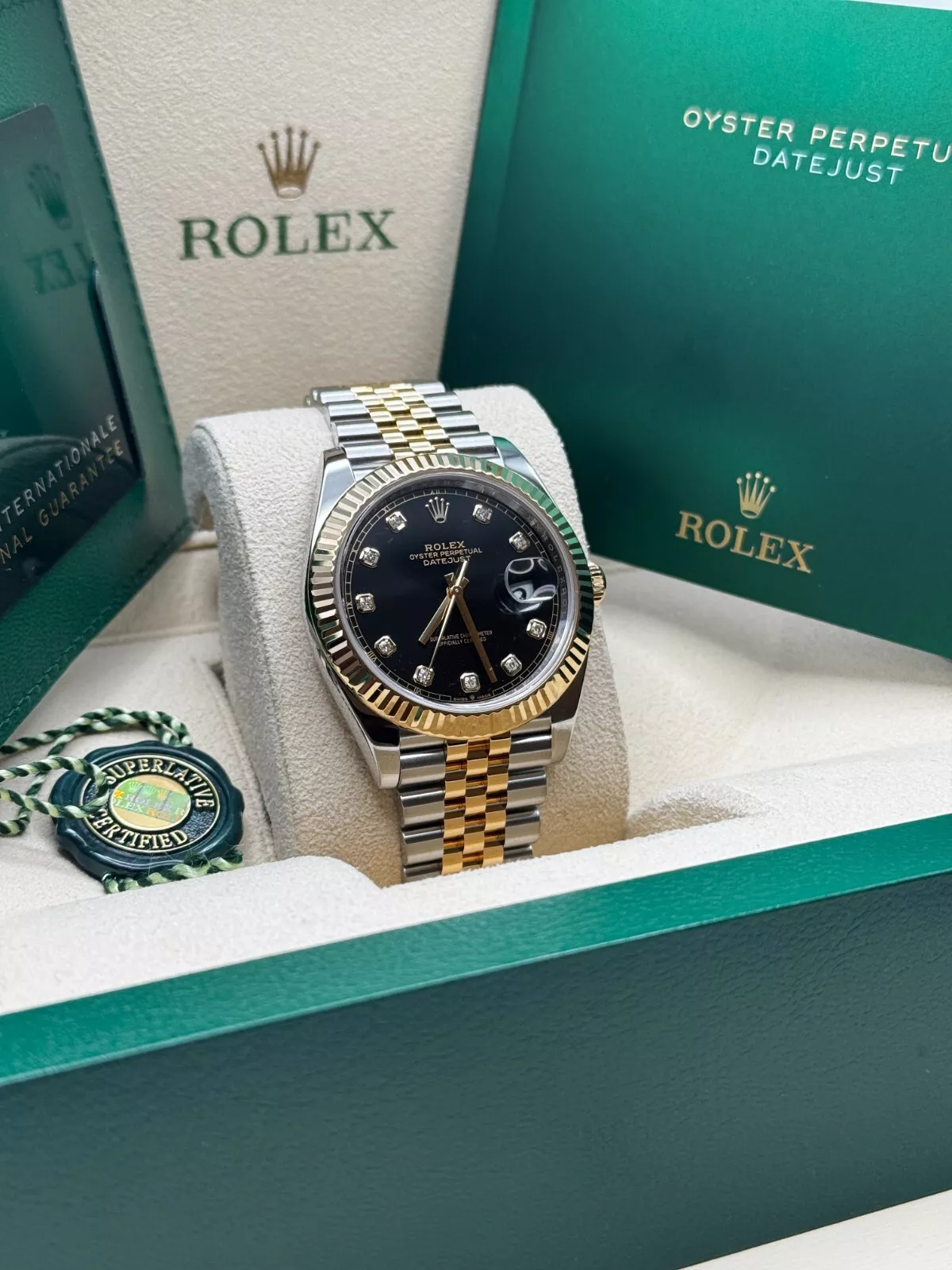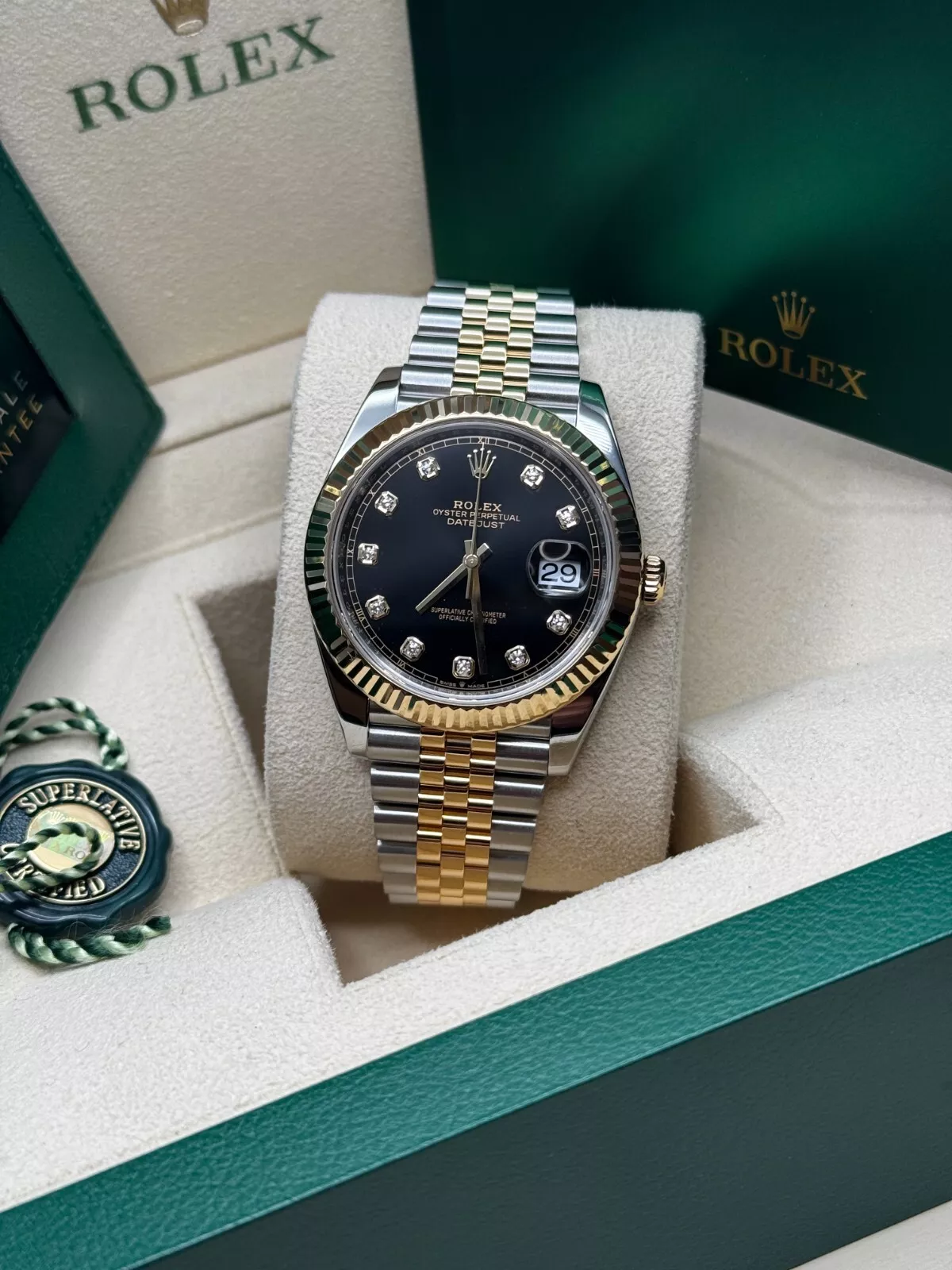• RLX Datejust 41mm 126333 Black Diamond Jubilee Steel and Yellow Gold Men’s Watch