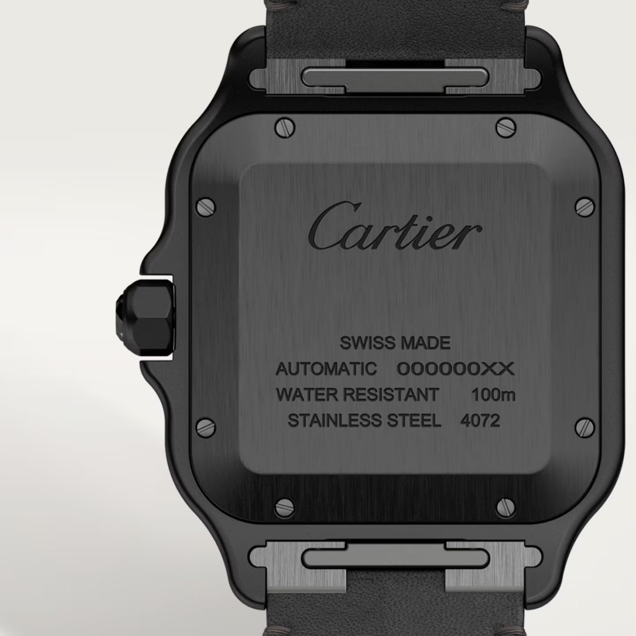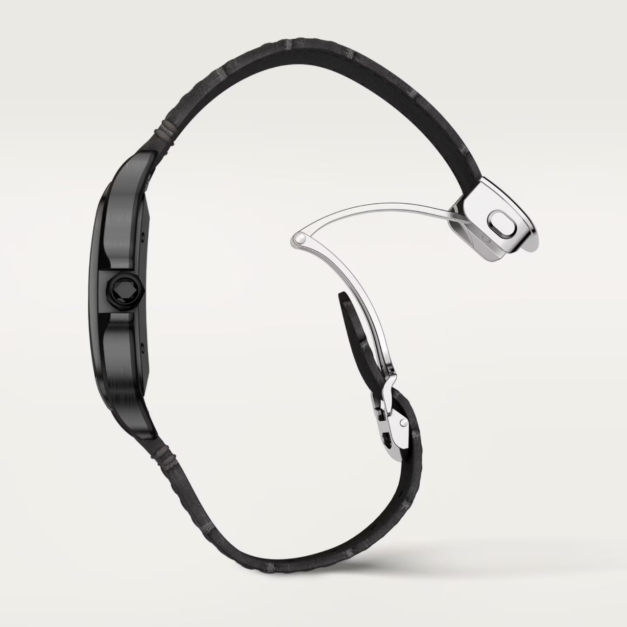 Strap Comes with a rubber strap featuring screw motifs and an interchangeable black alligator leather strap; both equipped with Cartier’s QuickSwitch system.