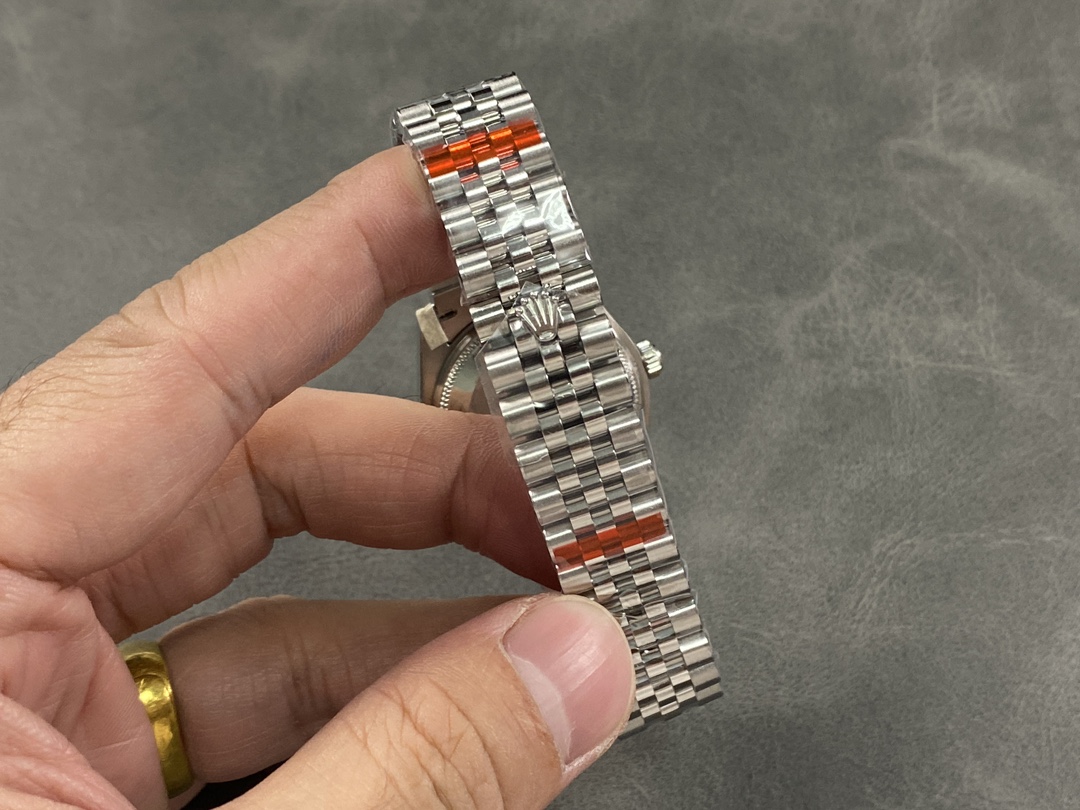 Rolex Datejust 279174 Stainless Steel Silver Roman Numeral Dial 28mm Lady Replica Watch, Features a 28MM Oystersteel Stainless Steel Case, Polished Solid white gold Fluted Bezel. Screw Down Crown with Twinlock Double ,Scratch-resistant sapphire crystal with Cyclops magnifying glass.Silver dial with Roman Numeral hour markers.Date calendar at 3 o'clock aperture. Oystersteel Stainless steel jubilee bracelet with a hidden clasp. It will look great on your wrist.
