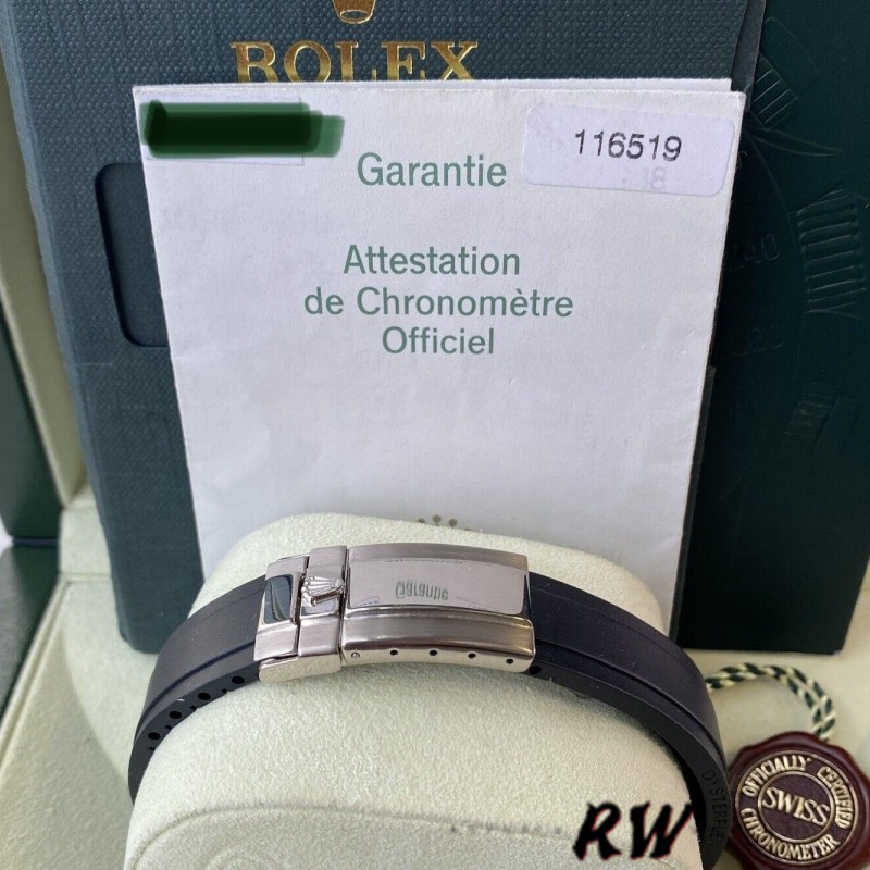 Rolex Daytona 116519 Black Dial Black Rubber strap 40mm Mens Replica Watch.40mm Stainless Steel case and bezel.Minute markers around the outer rim. Black dial. Black Rubber strap with deployant clasp. Luminous Index.The bright luminous sticks marked on the dial will light up when you leave the light.The hands of the replica watch is silver-tone which is pretty cool and fashionable.