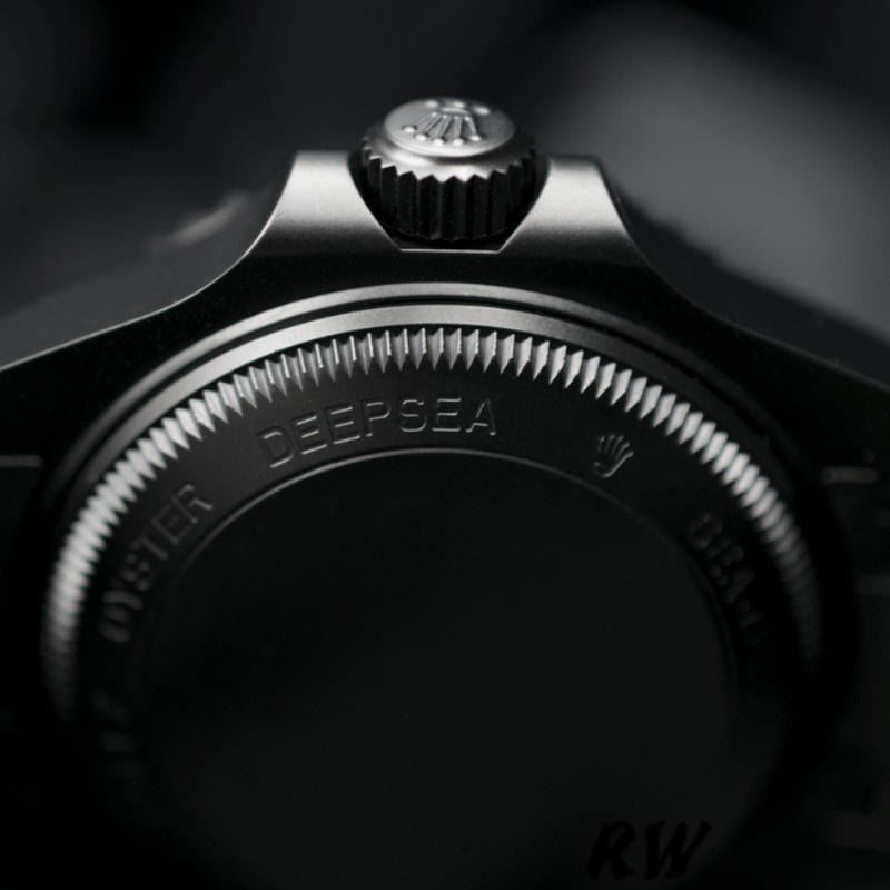Rolex Sea-Dweller Deepsea 116660 PVD/DLC Coated Stainless Steel D-Blue Dial 44MM Mens Replica Watch has a Stainless Steel with DLC / PVD Coating 44 mm Round Case with Screw Down Crown and a Ceramic Bezel. Custom D-Blue dial with luminous dots hour markers. Engraved 60 Minute Scale and Graduations on Bezel,Numerals Date window with magnifying bubble at 3 o'clock, sapphire crystal, Unidirectional Rotating Bezel, Stainless Steel with DLC / PVD Coating Oyster Bracelet will look great on your wrist.