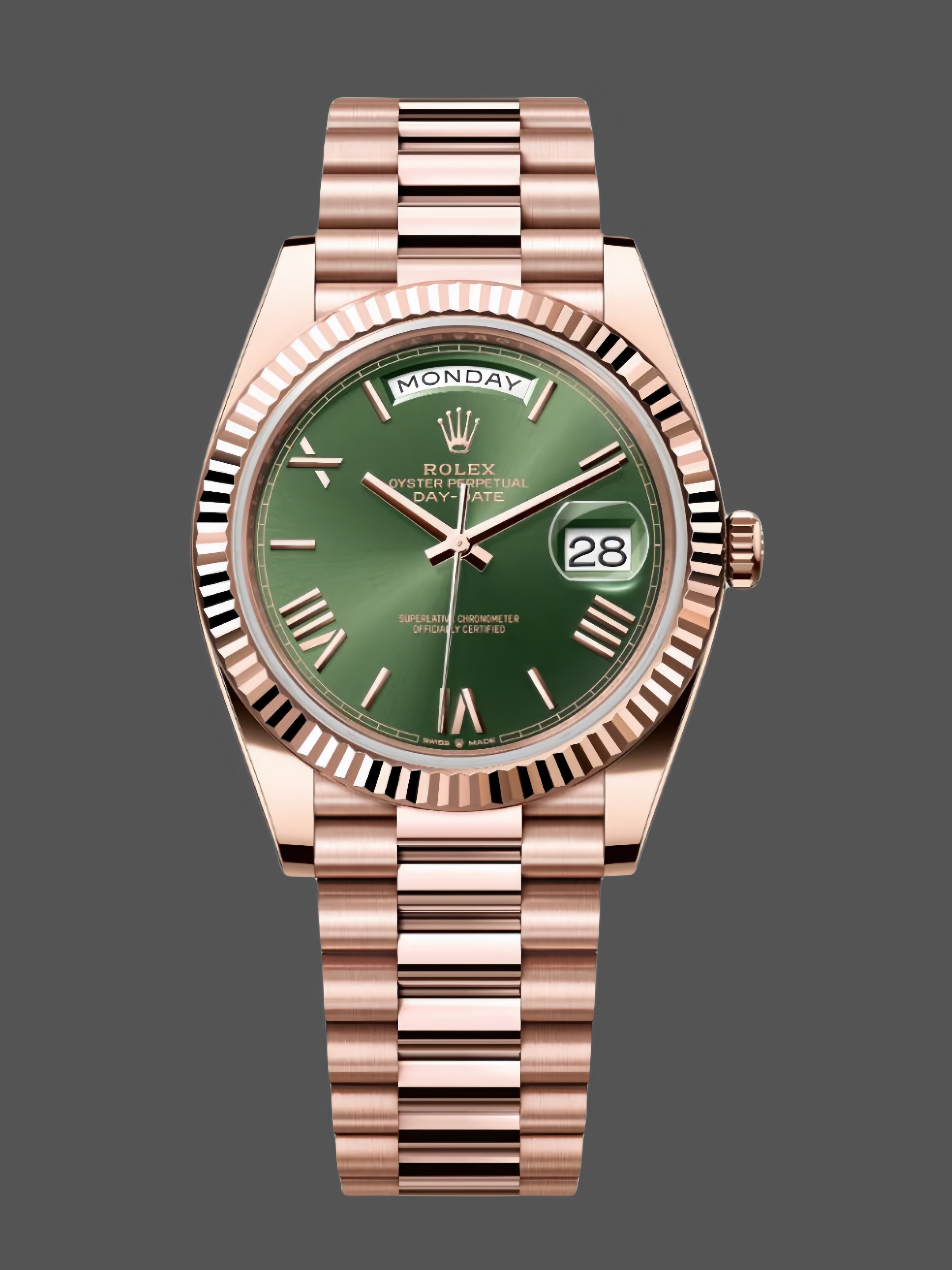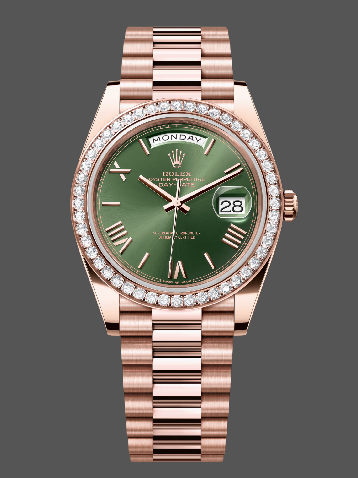 Rolex Day Date 40 18k Everose Gold Olive Green Dial m228235 0025 40mm