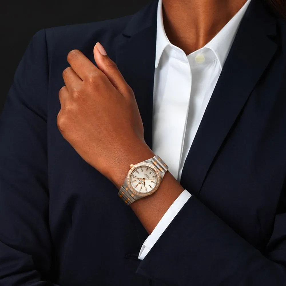 - Glistening diamond-set bezel and diamond hour markers