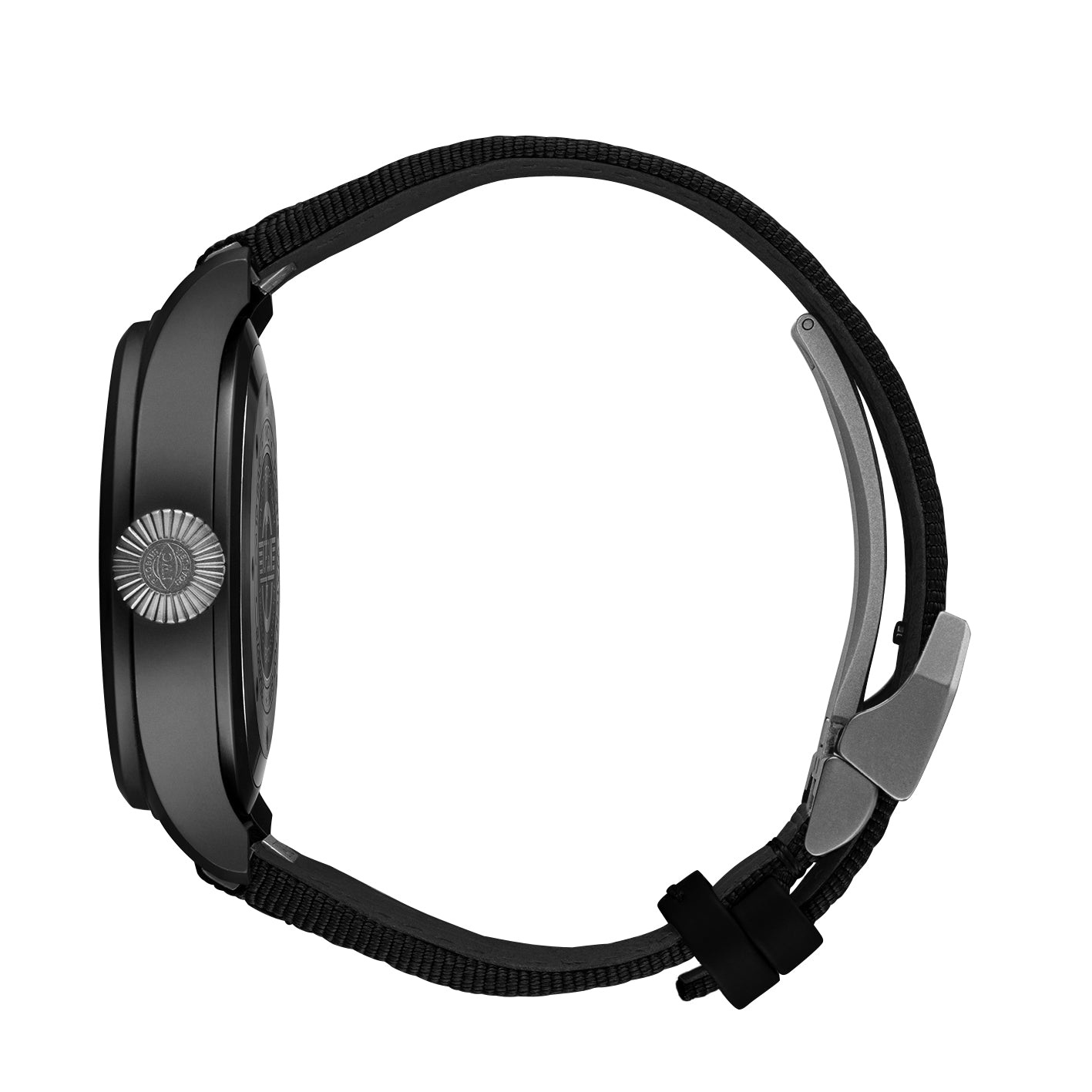 Highlights: The Pilot's Watch 43 TOP GUN (IW329801) features an extremely hard and scratch-resistant case made of black zirconium oxide ceramic, a black dial and black hands, as well as white printing and luminescence. The case back with the engraving of the TOP GUN logo and the crown are made of titanium. Ticking away inside is the IWC-manufactured 82100 caliber. The high-end automatic movement boasts a Pellaton winding system that has been reinforced with ceramic components and builds up a power reserve of 60-hours.
