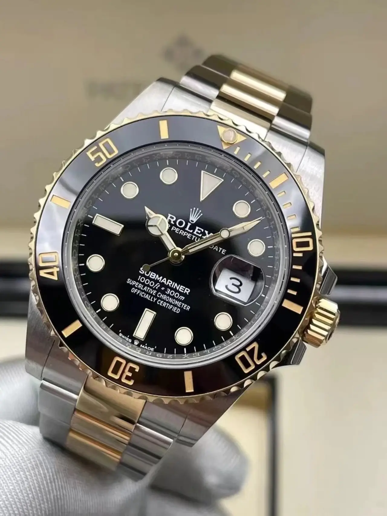 Unworn Rolex Submariner 126613ln-0002, 41 mm. The watch has Black Dial. The Case is Yellow Rolesor - a combination of Oystersteel and 18 ct yellow gold w/ 3235 Movement, 70 hours power reserve. The Bracelet Yellow Rolesor - a combination of Oystersteel and 18 ct yellow gold with Folding Oysterlock safety clasp with Rolex Glidelock extension system. The Water-resistant is up to 300 m. The Watch comes complete with Rolex Papers & Box. Covered with Rolex 5-Year Warranty.